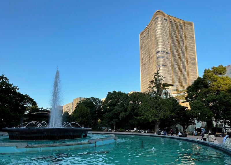 ↓「日比谷公園の大噴水」(東京都千代田区)。右側のビルは「東京ミッドタウン日比谷」。
